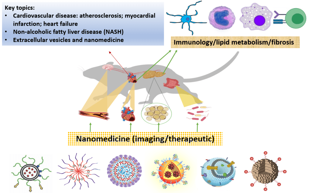 Our team has been working on cardio-metabolic diseases, cardiac immunology, extracellular vesicles and nanomedicine. Our laboratory is working with various established pre-clinical animal models of human disease, including myocardial infarction, ischemia reperfusion injury, pressure overload, diet-induced heart failure), atherosclerosis and non-alcoholic fatty liver disease. The newly established NANONASH research program aims to tap unto brilliant and young scientists to develop new and effective nanomedicine-based therapies for the treatment of fatty liver disease. Our group also works on new nanomaterials and drug delivery systems (carrying small molecules, nucleic acids, RNAs etc) for translational research in cardiovascular disease, fatty liver disease and gut related disease. Our nanomedicine laboratory, the Centre for NanoMedicine, provides state-of-the-art technology to enable such research and expand the applications of nanomedicine for unmet clinical needs.